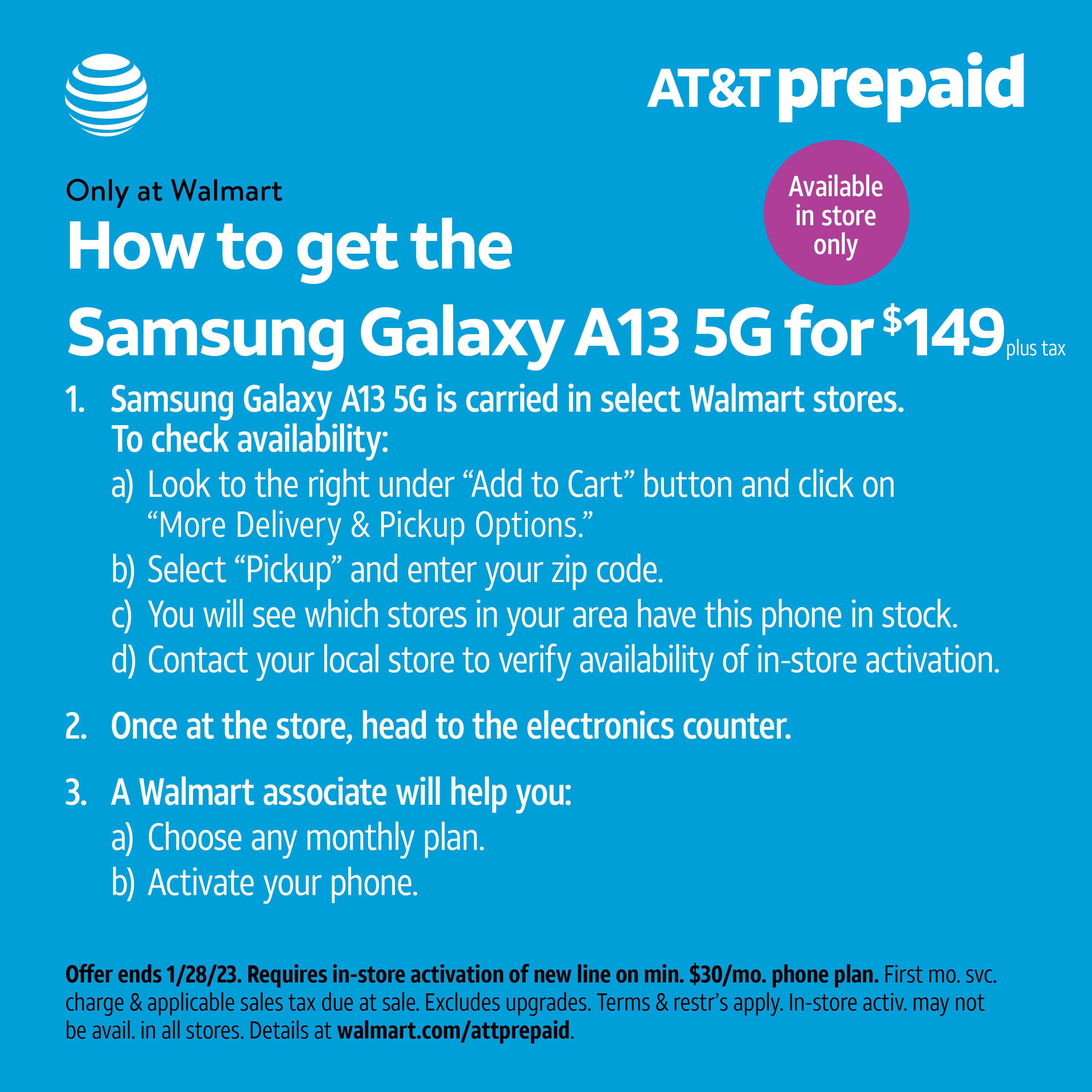 At T Samsung A13 5g 64gb Black Prepaid Smartphone Walmart Com